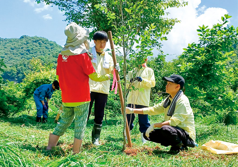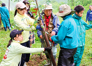 長野県自然保護課、長野市環境保全温暖化対策課と鬼無里中学校の皆さまと共に、毎年ブナの植樹整備活動を行っています。