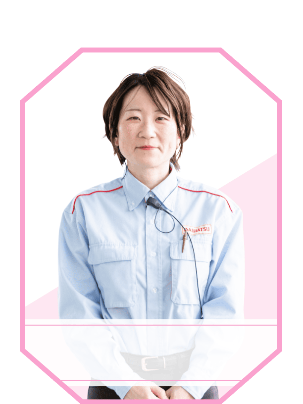 スタッフ - お客様を最初にお出迎えする「お店の顔」。来店されたお客様のお出迎えやお見送りをします。また「ダイハツカフェプロジェクト」の中心として、ドリンク、スイーツのご提供といったおもてなしで、お客様が心地よく過ごせるお店づくりに取り組んでいます。現金・預金の管理など事務処理も行います。