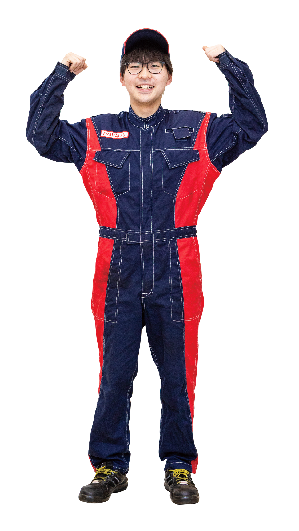 初めて扱う部品の交換作業を行った際に先輩にサポートしてもらいながら無事に作業を終え、正常な状態の車を見たときに「しっかり整備できた!」と達成感とやりがいを覚えました。また、お客さまの期待に応えることができ、「ありがとう」と感謝の言葉をいただく時は、自動車整備の仕事をしていて良かったと心から思います。