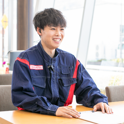 専門学校で開催された校内企業説明会で当社の説明を聞き、興味を持ったのがきっかけです。また、当時、自分自身がダイハツ車に乗っていたこともあり、ダイハツ車の魅力や整備性の良さを実感していたので当社を志望しました。
